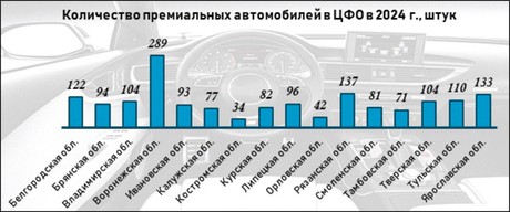 По сравнению с 2023 годом практически во всех субъектах на дорогах прибавилось число люкс-каров. В первую пятерку с наибольшим приростом премиальных автомобилей вошли Воронежская (+118 штук или 69%), Тульская (+44 шт. или 67%), Тверская (+43 шт. или 71%), Брянская (+34 шт. или 57%) и Ивановская (+32 шт. или 52%) области. Также минимум в 1,5 раза увеличилось количество элитных машин в Московской, Смоленской и Орловской областях.