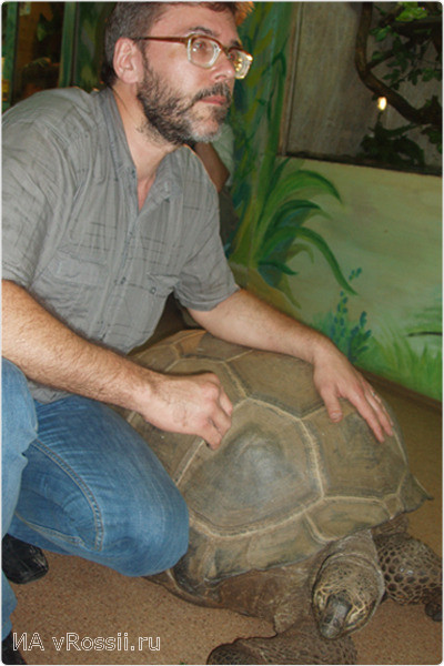 Напомним, сейшельская (гигантская) черепаха появилась в тульском экзотариуме в июле прошлого года. Размер ее панциря составляет около 1 м, вес 135 кг, возраст около 100 лет. На настоящий момент это самая крупная черепаха в зоопарках России. Экзотариум выменял черепаху у Московского зоопарка. За нее пришлось отдать одну из редчайших куфий Китая. Нарекли рептилию Геркулесом.