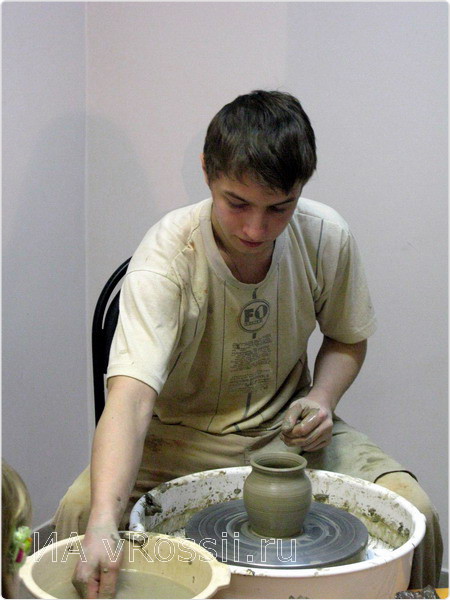 От старшего поколения не отстает и молодежь. Мастер-класс "Знакомство с гончарным кругом" проводил молодой гончар – Марк Карпинский, студент V курса худграфа ЛГПУ. При музее он освоил гончарное дело и теперь ведет там кружок "Глиняная игрушка".