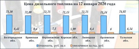 Дизельное топливо на заправках в ЦФО подорожало в среднем на 10% (практически 7 руб.). В 2026 году цена на дизель установлена на уровне 74,8 руб. за литр. Например, в Воронежской области дизельное топливо прибавило в стоимости почти 11% или 7,1 руб. Во всем округе ценник на этот вид горячего увеличился от семи рублей еще в двух регионах – Ярославской области и столице. Минимальный предел подорожания характерен для Орловской и Курской областей – 6 рублей.