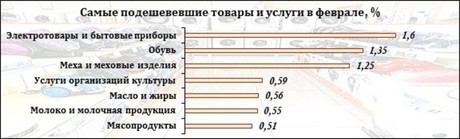 Молочная продукция и сыр подешевели в связи с расширением отечественного производства и снижением закупочных цен на молоко. А уменьшение стоимости меховых изделий мотивируется снижением спроса под завершение зимнего сезона. Поэтому продавцы предлагают такие вещи с небольшими скидками.