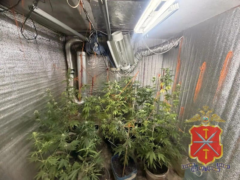 При осмотре его дома в подвале оперативники нашли оборудованную злоумышленником оранжерею. Там находилось порядка 100 горшков с живыми растениями, а также мешки с сухой травой и пакет с измельченной массой зеленого цвета общим весом около 5 килограммов.
