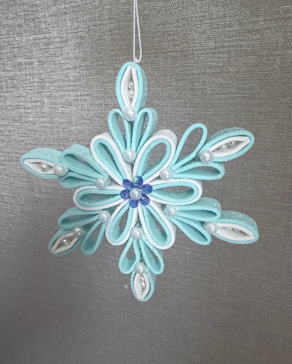 Описание: Снежинка из фоамирана, украшена бусинами и стразами