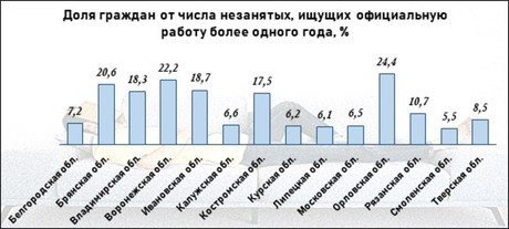 В Тамбовской, Тульской и Ярославской областях, а также в столице, во втором квартале отсутствовали безработные, более 12 месяцев засидевшиеся без трудоустройства.
