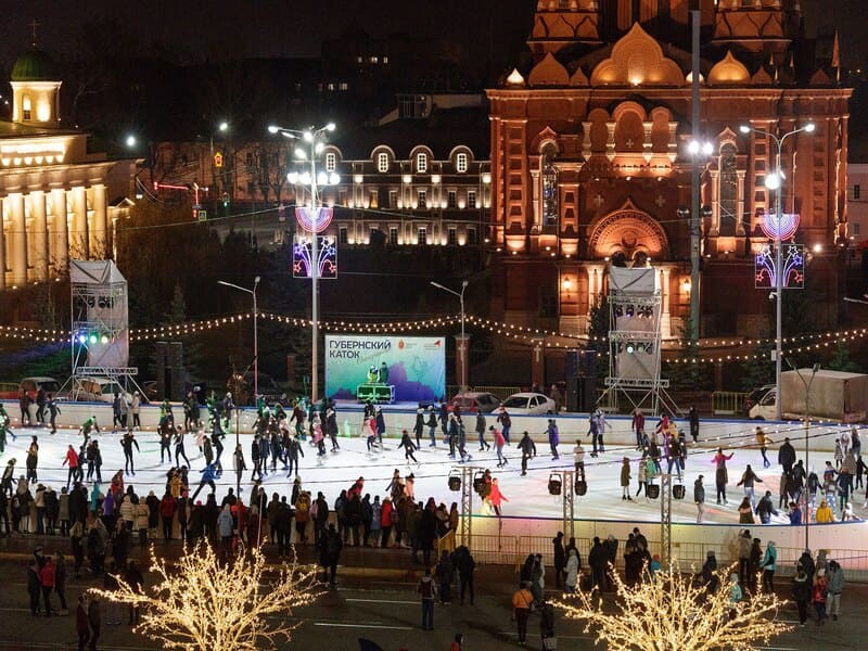 Официальное открытие пройдет 5 декабря. Как и в прошлом году, установлены 2 ледовые площадки: основной лед и детский лед. Есть раздевалки и прокат коньков.