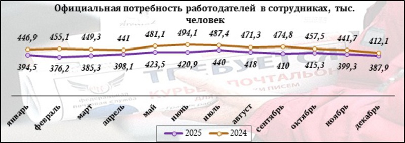В 2024 году компаниям требовалось минимум 410 тыс. работников, а иногда заинтересованность выражалась полумиллионом открытых вакансий. Но в прошедшем году максимальная потребность измерялась уже 440 тыс. незанятых должностей. А общее количество вакансий менее 400 тыс. совсем не внезапность, а устойчивая закономерность.