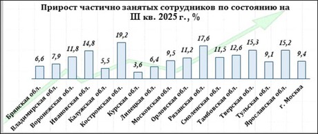 К концу третьего квартала 2025 года в ЦФО количество сотрудников с частичной занятостью составило 1,7 млн человек. За год число специалистов, занятых неполный рабочий день, увеличилось на 9,5% или на 146 тысяч человек. Об этом говорится в исследовании аудиторско-консалтинговой сети "ФинЭкспертиза".