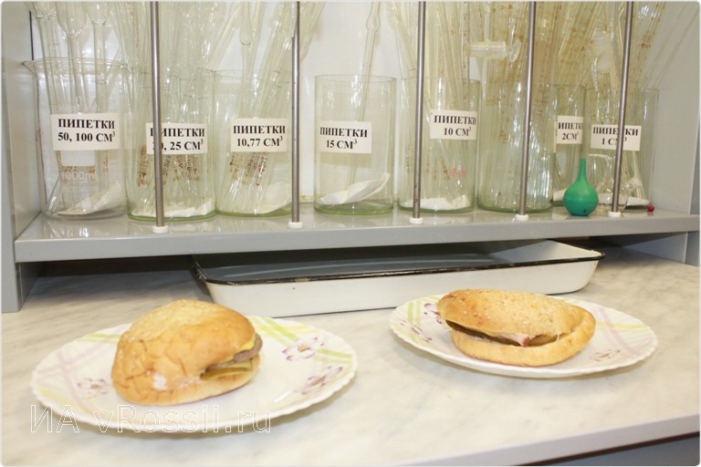 Чтобы лично убедиться в том, в чем нас так активно предостерегают диетологи, мы решили провести небольшое исследование состава "уличных продуктов". В одной из точек быстрого питания были закуплены два образца: чизбургер с куриной котлетой и чизбургер с окороком и отправлены на анализ в одну из лабораторий. Предварительно, мы запросили состав продуктов у продавцов. На выявление белков, жиров и углеводов из предоставленных образцов у специалистов ушло двое суток.